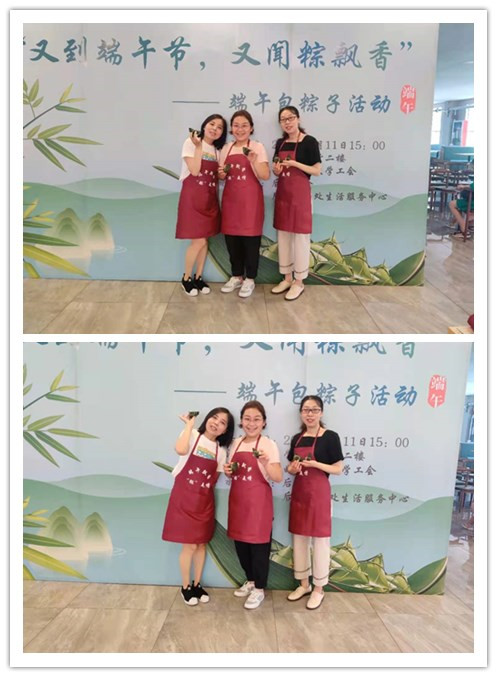 2021611日下午,由pg娱乐城官网 工会主办、后勤工会和后勤管理处生活服务中心承办的“又到端午节,又闻粽飘香”端午包粽子活动在学生第三食堂二楼隆重举行。pg娱乐城官网 吴静、王瑾、汪娟三位青年教师代表单位参加了此次活动。