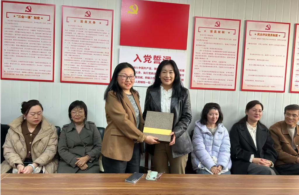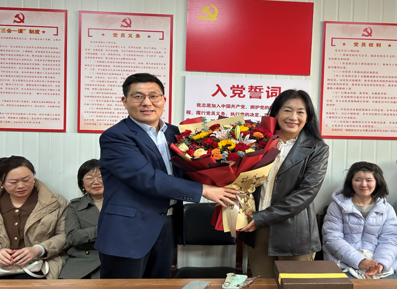 为王嫦娟老师送上饱含诚挚祝福的鲜花。全体工会会员准备了精美的礼品集体表达对王老师依依不舍之情和美好退休生活的深情祝愿。