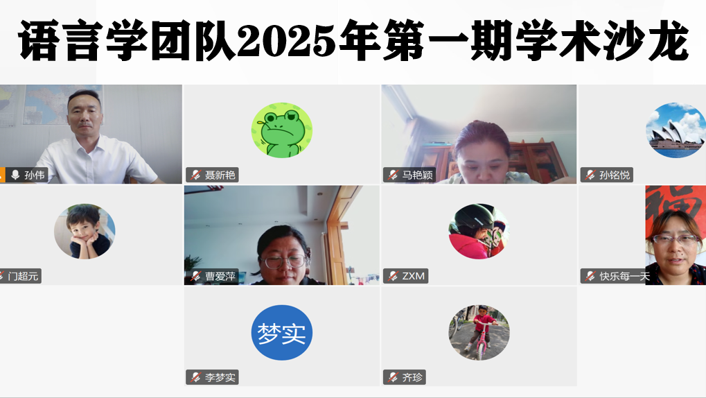 语言学研究团队通过腾讯会议形式成功举办2025年第一期学术沙龙。本期沙龙活动由团队负责人孙伟主持,曲阜和日照两校区的全体团队成员参加了本次学术交流。