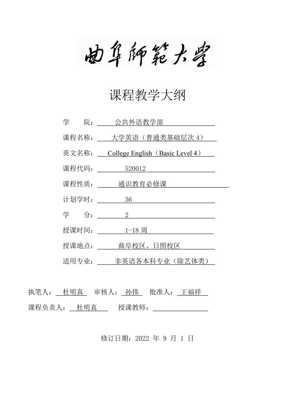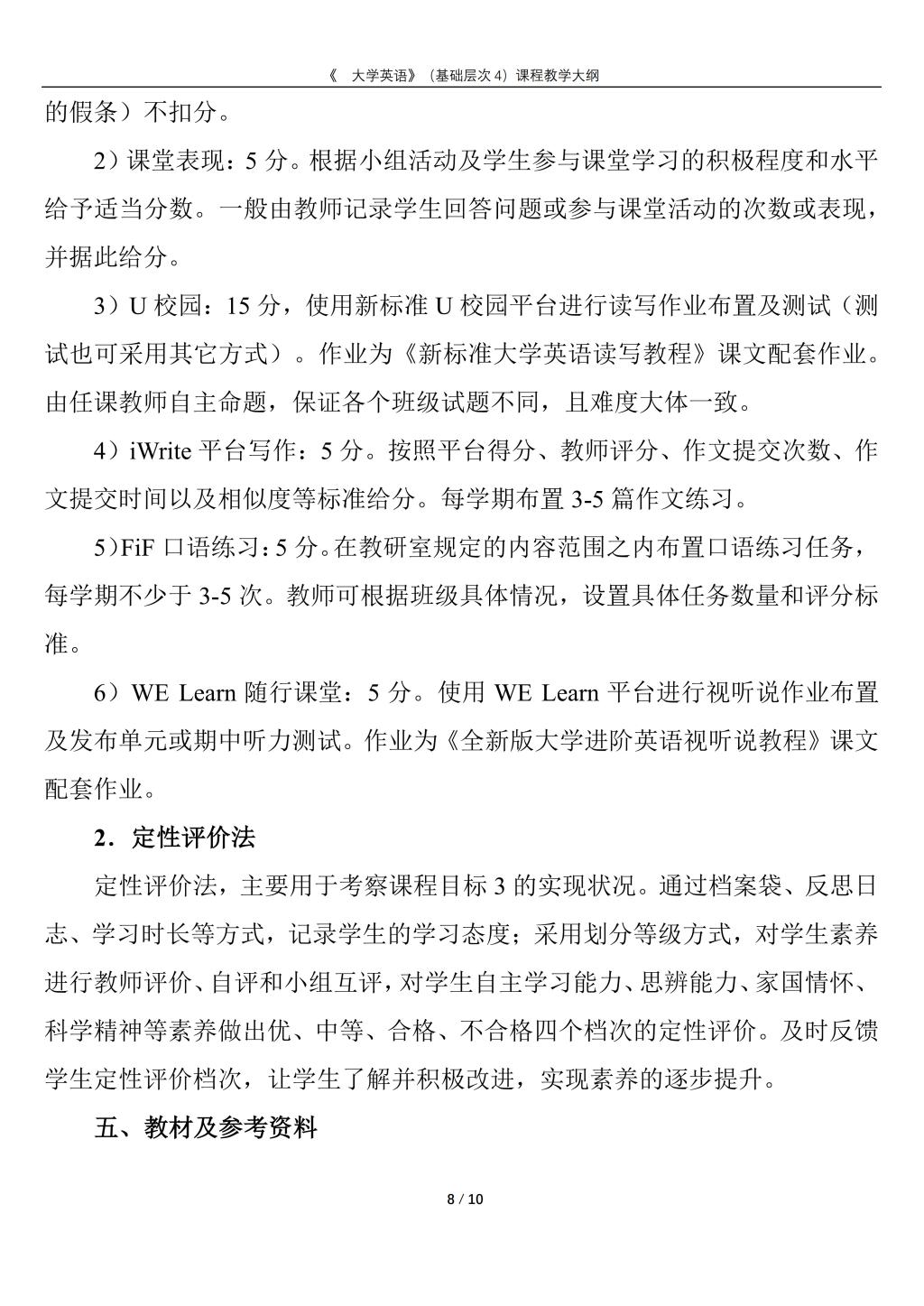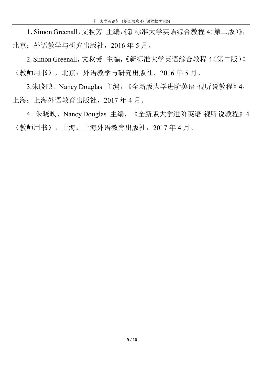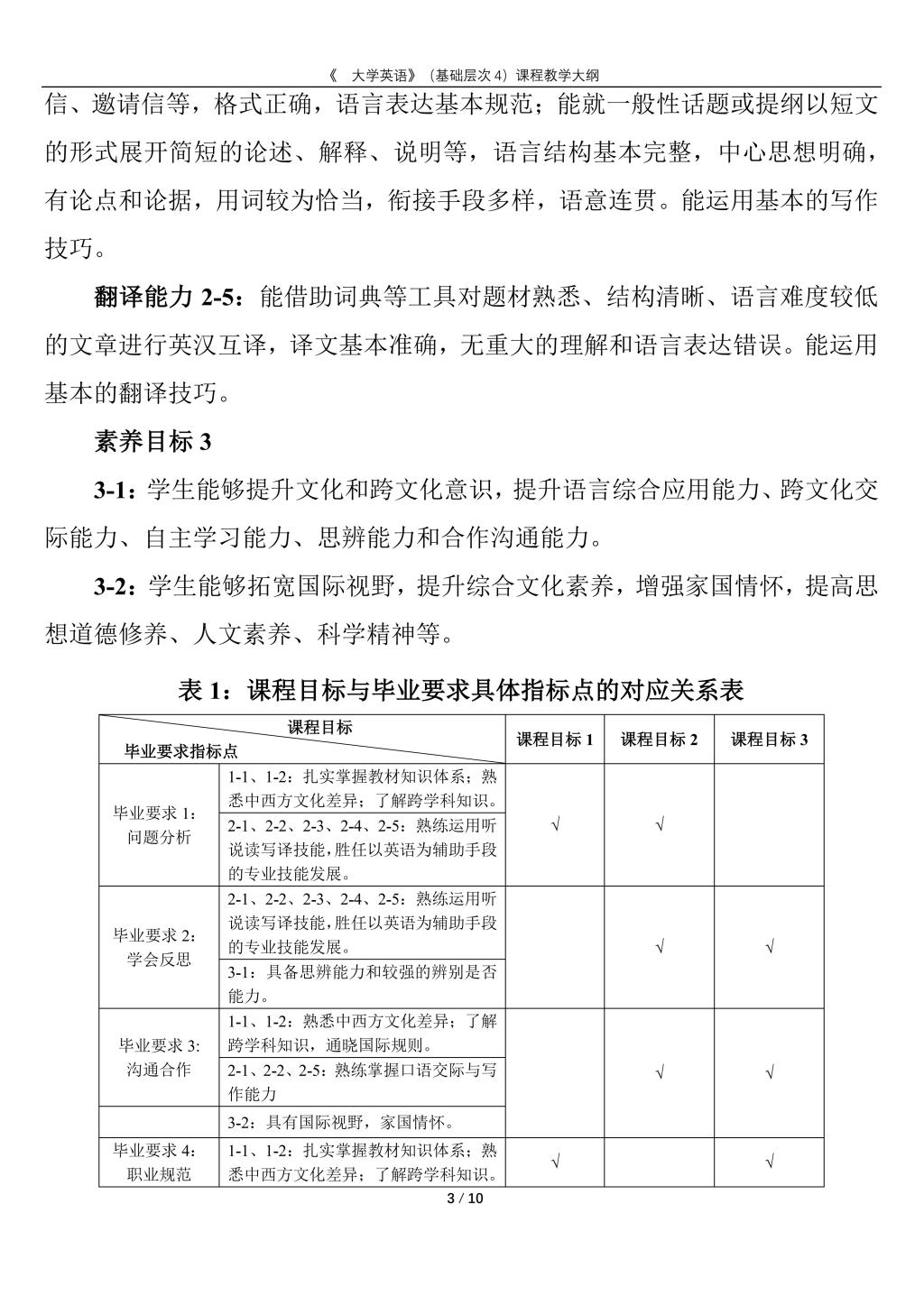 大学英语(普通类基础层次4)课程教学大纲(2022版)