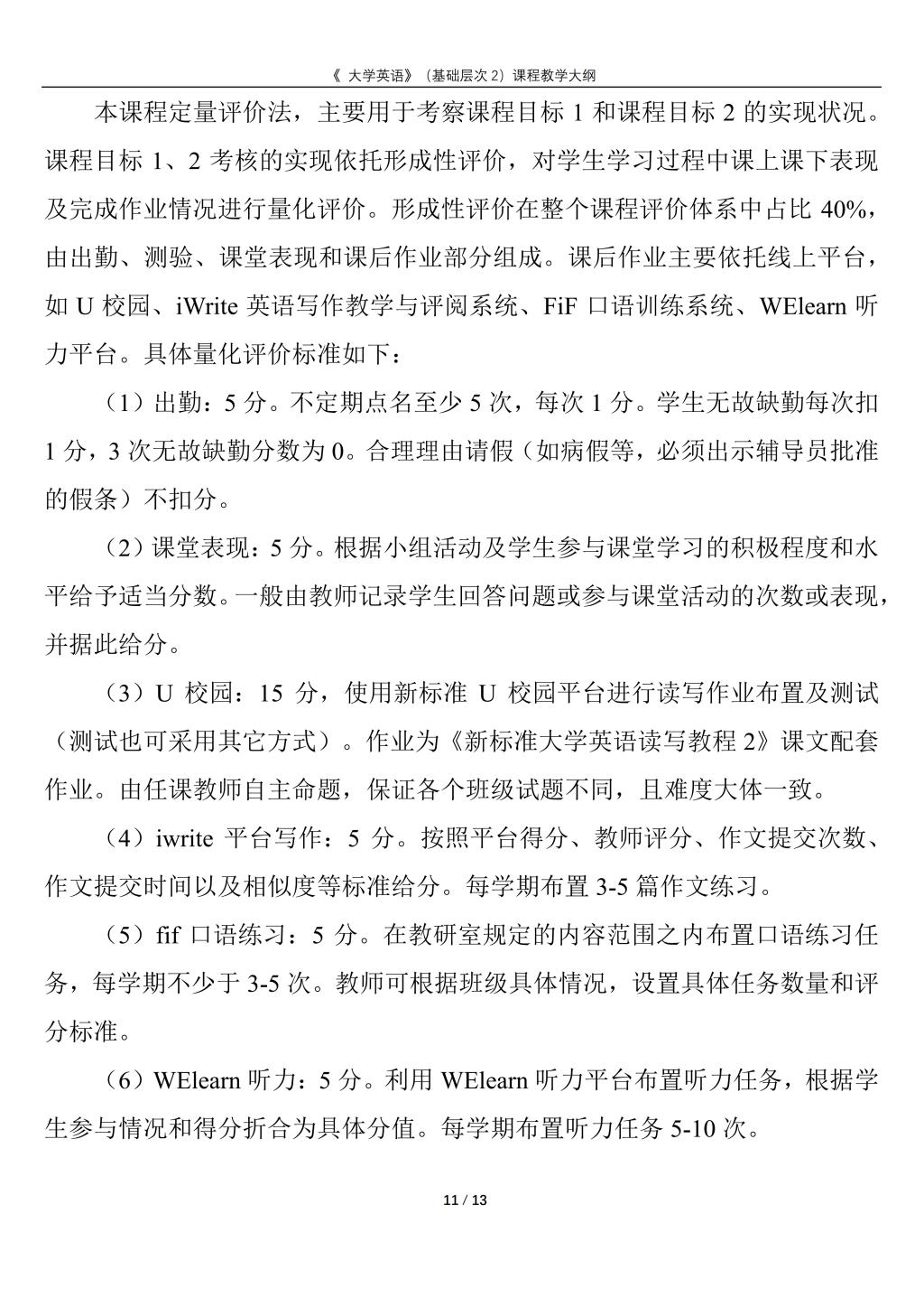 大学英语(普通类基础层次2)课程教学大纲(2022版)