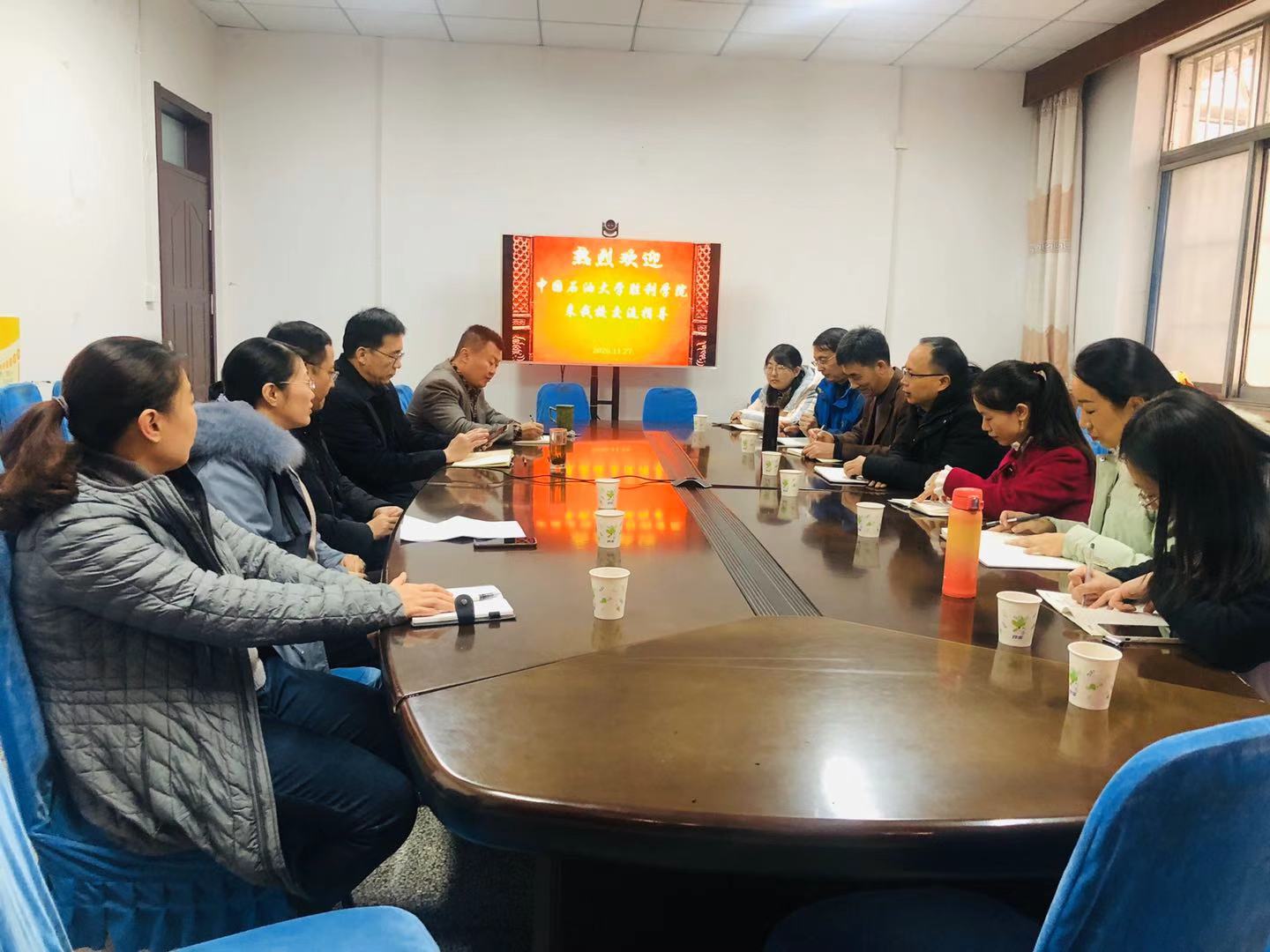 2020年11月27日,中国石油大学胜利学院基础科学学院副院长孙涛率外语系主任盛庆全、副主任庞晓峰以及骨干教师一行7人来pg娱乐城官网